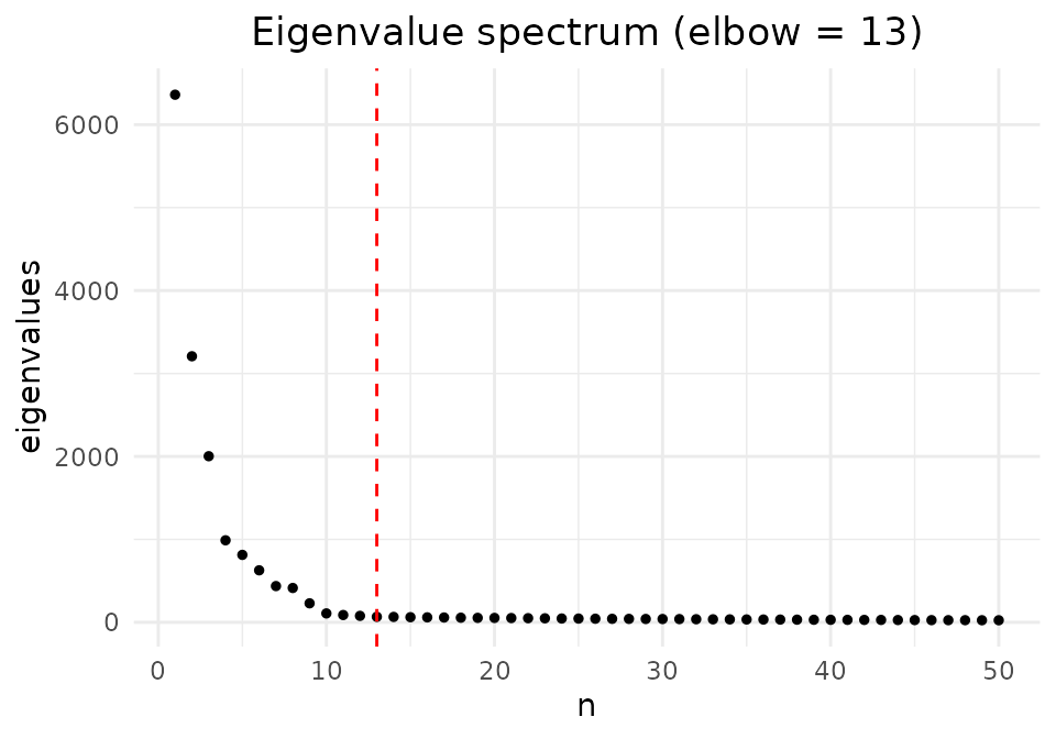 ggtitle(paste0("Eigenvalue spectrum (elbow = ", elbow, ")"))